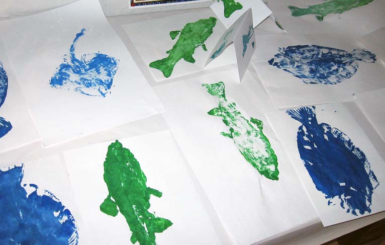 after dinner I wanted them come into the studio to create some fish prints. The last